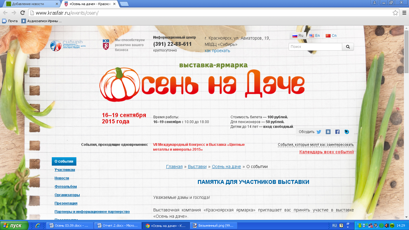 Подробнее о выставке можно узнать на нашем сайте http://www.krasfair.ru/events/osen/